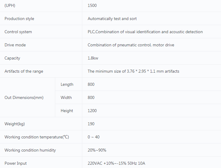 通過振動(dòng)盤和線性給料器傳送零件,然后經(jīng)過機(jī)器視覺系統(tǒng)檢測(cè),被機(jī)器人抓取,自動(dòng)連接到測(cè)試系統(tǒng),電聲軟件將收集和分析測(cè)試數(shù)據(jù),然后將零件分類放入不同的箱子。